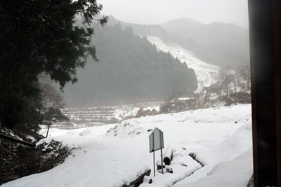 雪の中の滝を見たくて、長靴履いて、雪道を登って行った。