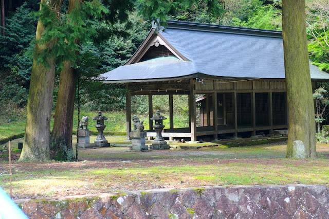 神社は県道に標識が出ていたので、すぐにわかった。狭い集落内の道を上がって行き、神社の駐車場らしき場所がなかったので、少し行ったところに神社を含めた地区の文化の説明を書いた看板前のスペースに駐車した。
